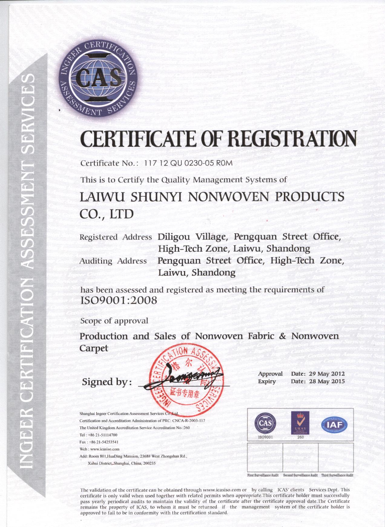 • 祝賀我公司一次性通過ISO9001-2008質(zhì)量管理體系認證