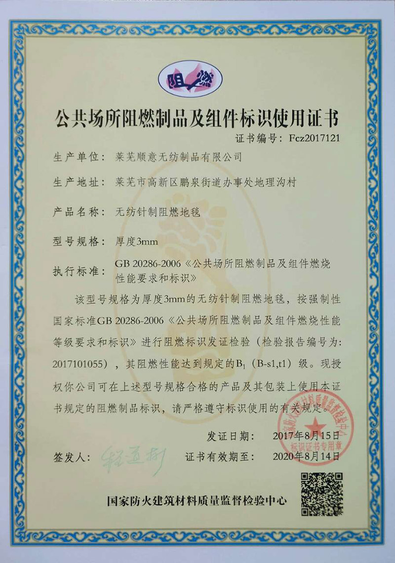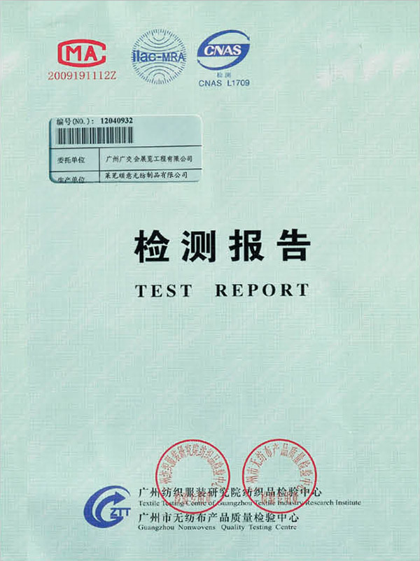 • 本公司生產(chǎn)的無紡阻燃地毯檢測合格